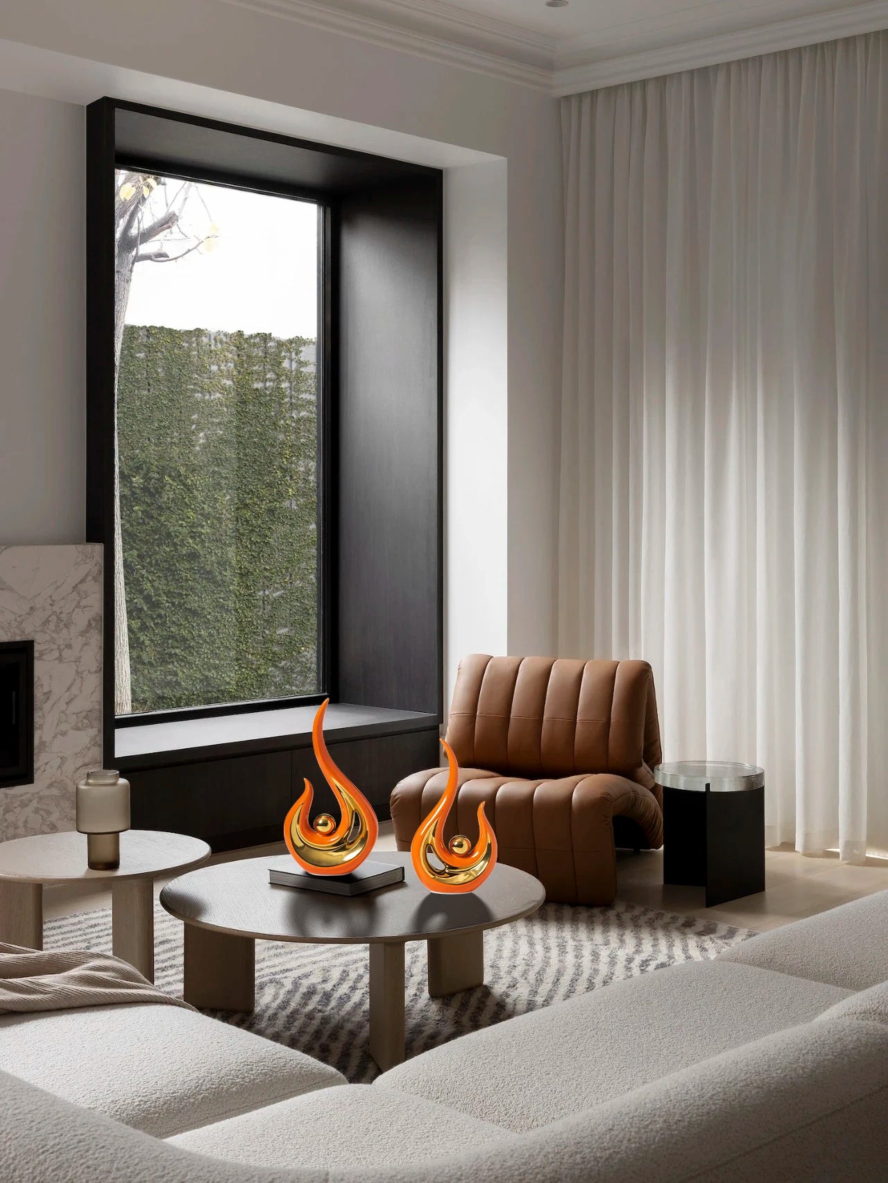 - Its vibrant orange and gold hues create a striking visual appeal, perfect for complementing contemporary interior designs.